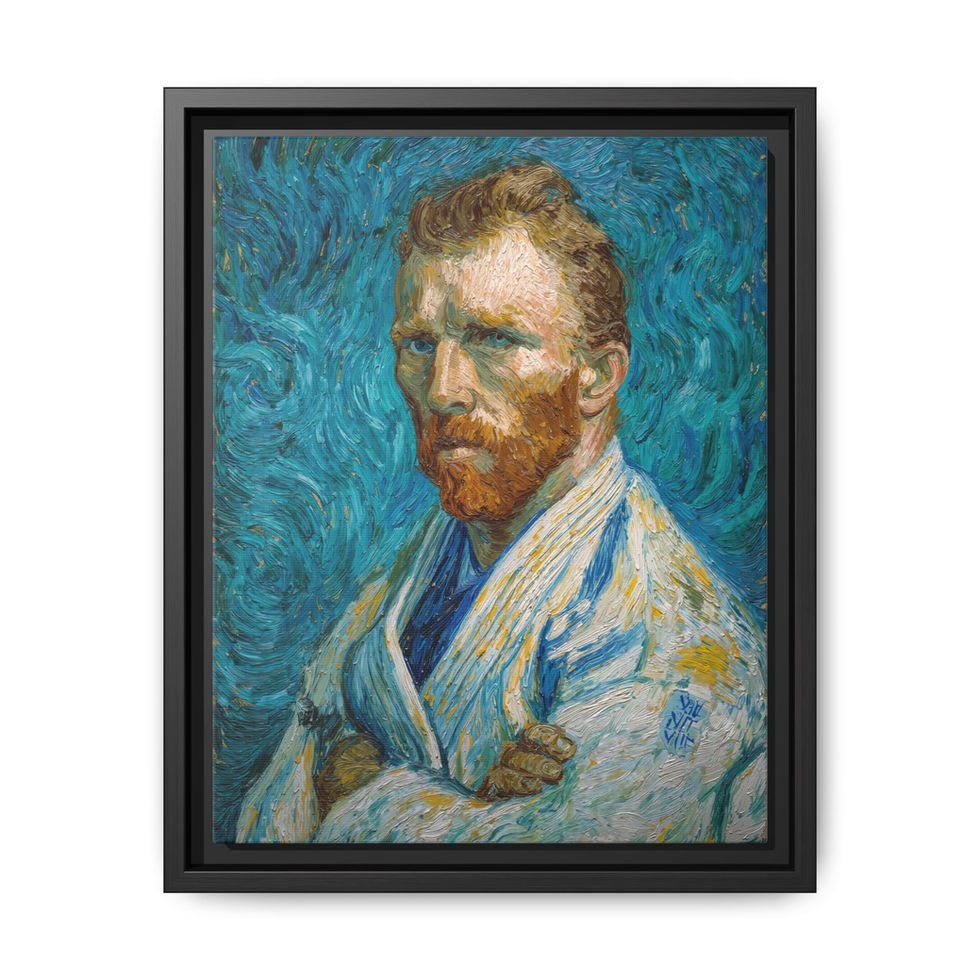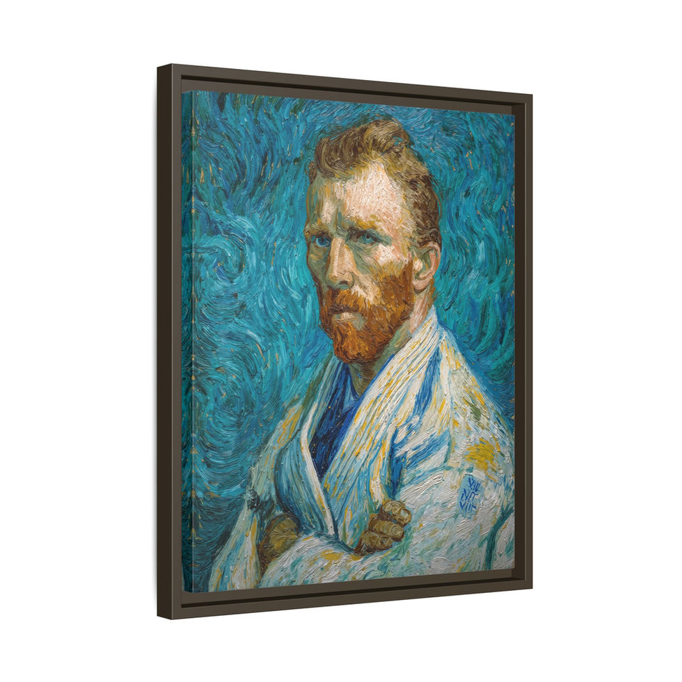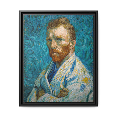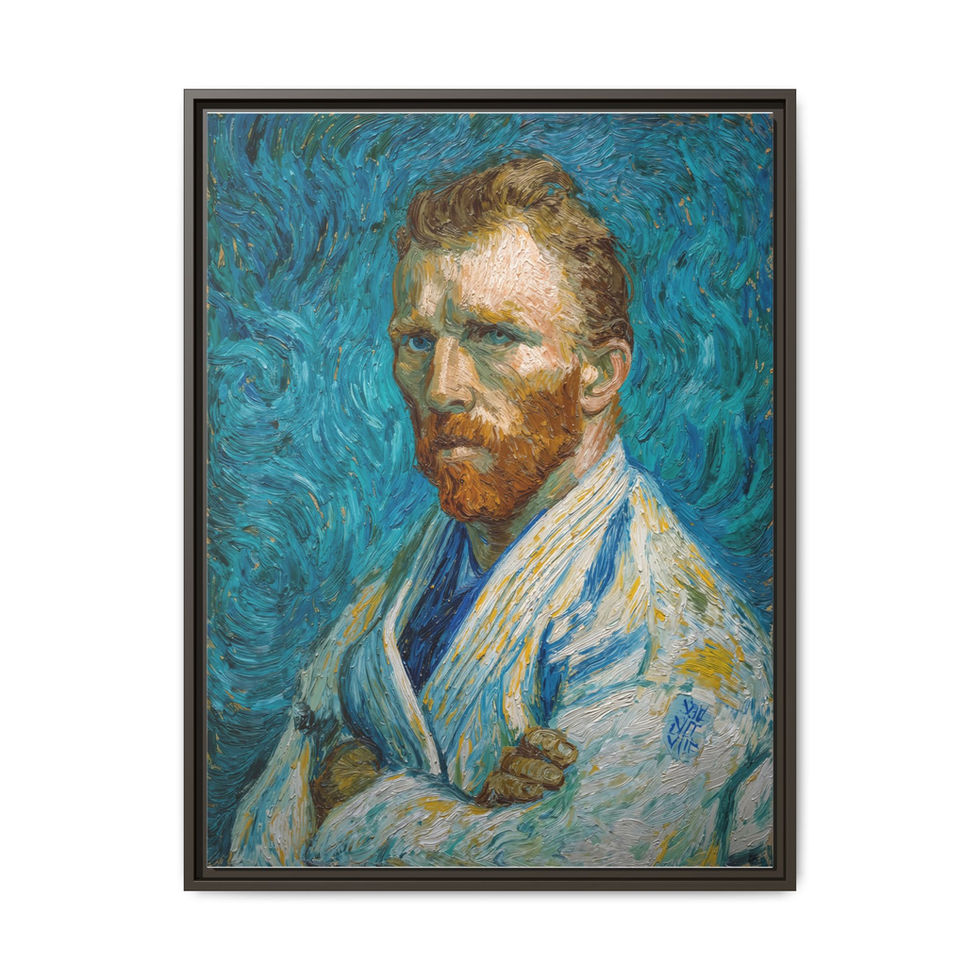 A playful martial-arts remix inspired by Van Gogh’s iconic self-portrait style — textured strokes, swirling colour, and a gi that definitely didn’t exist in the 19th century. Perfect for fans of martial arts art, painterly illustration, creative mashups, and anyone who’s ever wondered what would happen if post-impressionism discovered BJJ.
